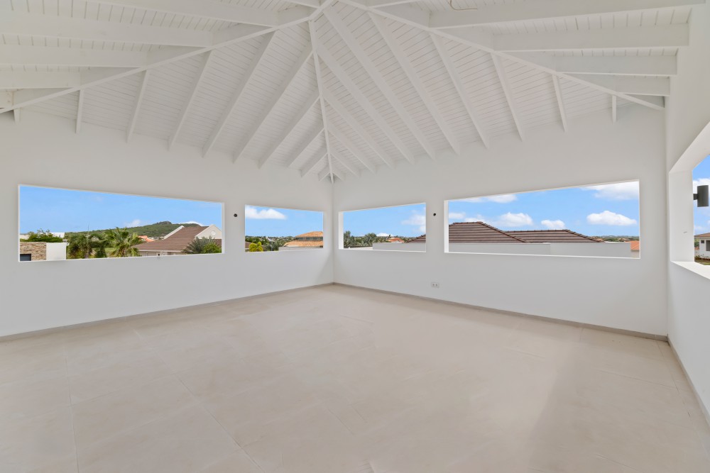 Step onto the expansive balcony and enjoy panoramic views over the rolling hills of Curaçao and the lush fairways of the golf course—an ideal setting for a relaxing morning coffee or quiet moments throughout the day.