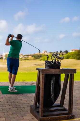 Vanaf het ruime balkon geniet u van een panoramisch uitzicht over de heuvels van Curaçao en de groene fairways van de golfbaan. Een perfecte plek voor een ontspannen ochtendkoffie.