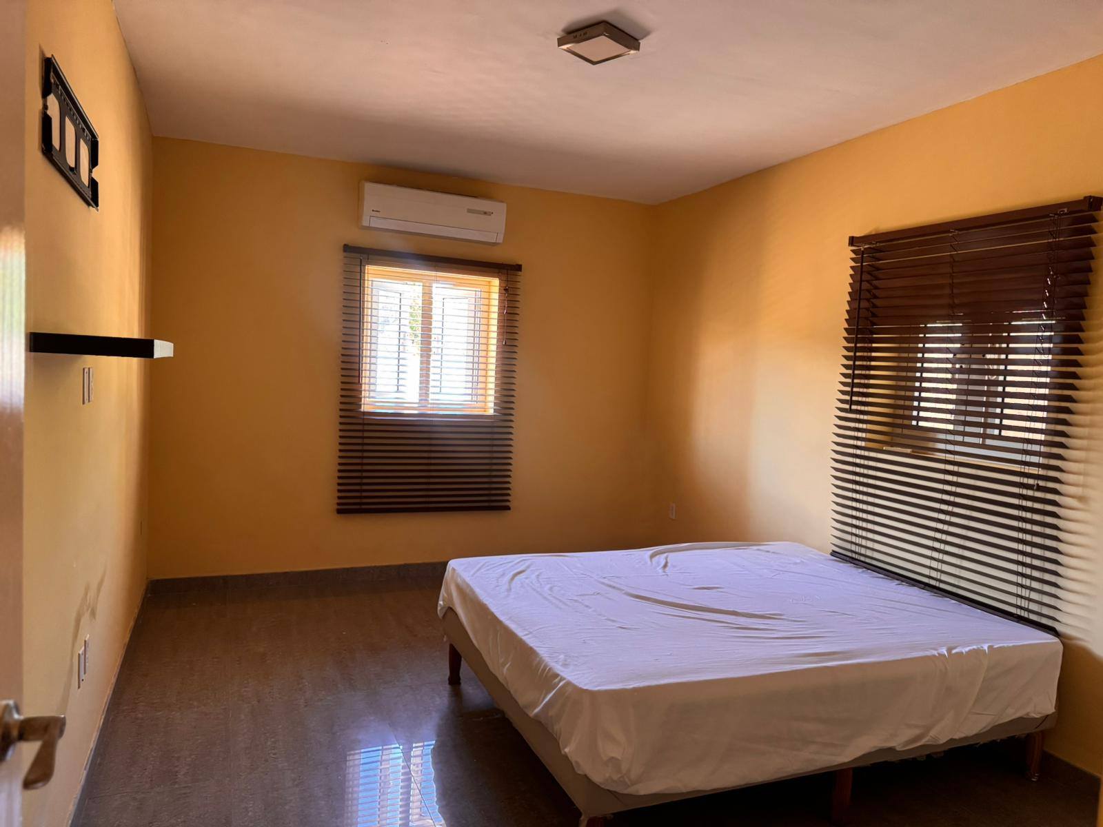 Het appartement is semi-gemeubileerd en beschikt over twee slaapkamers, twee badkamers en een walk-in closet. De ruime woon- en eetkamer sluit aan op de keuken, die is voorzien van een kookplaat en magnetron (geen koelkast).