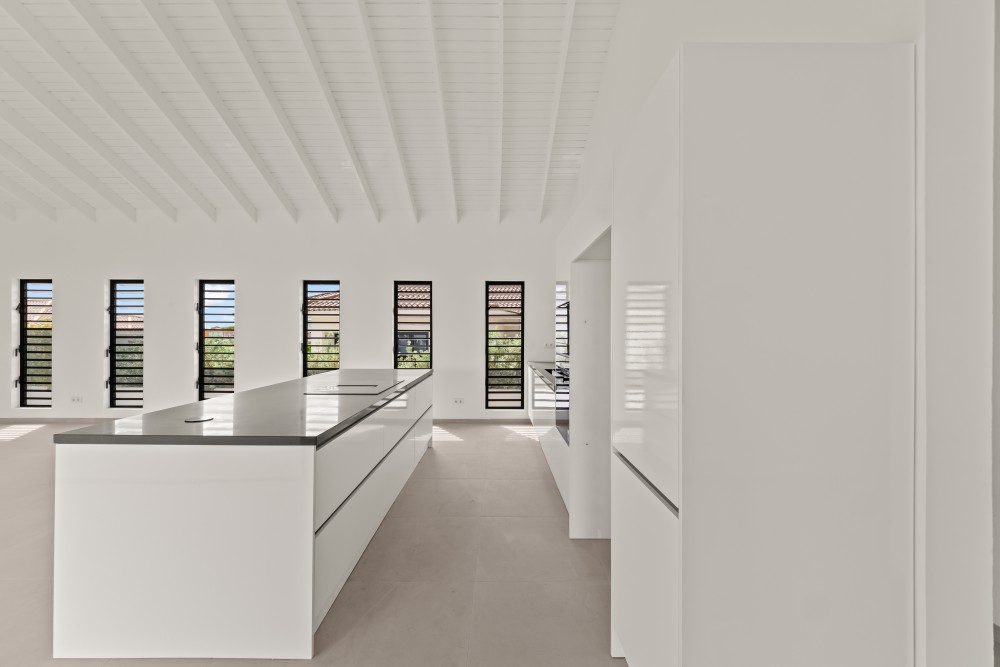 Step onto the expansive balcony and enjoy panoramic views over the rolling hills of Curaçao and the lush fairways of the golf course—an ideal setting for a relaxing morning coffee or quiet moments throughout the day.